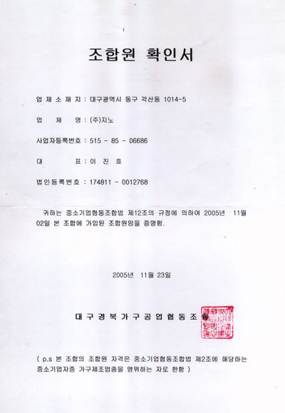 대구경북가구공업협동조합 확인서