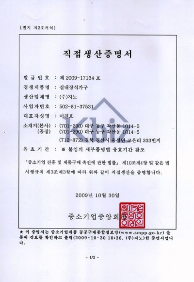 직접생산증명서(가구)