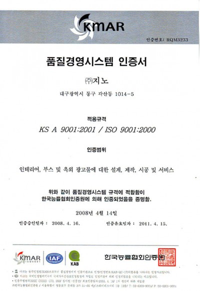 품질경영시스템 인증서